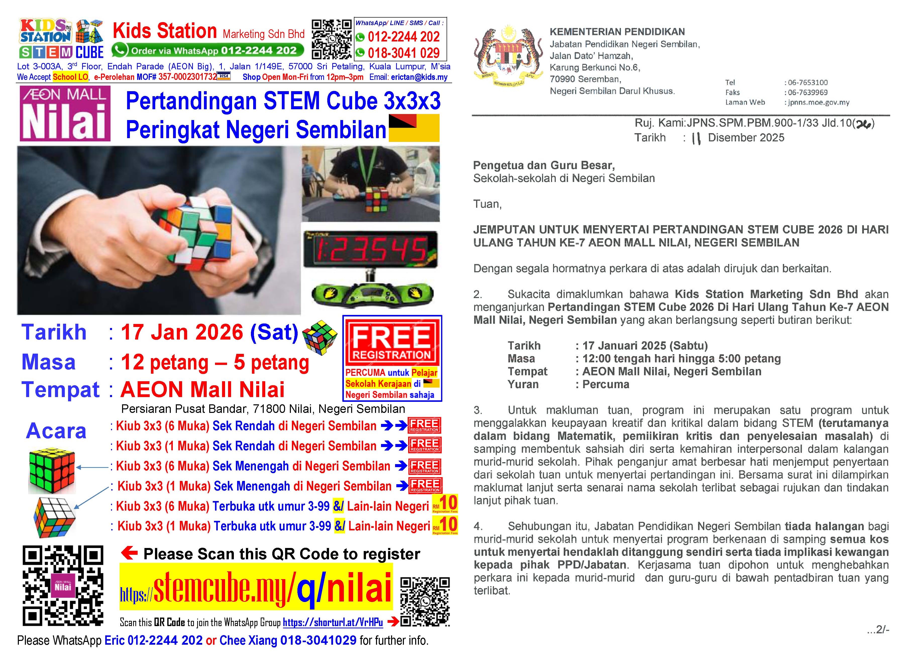 : Kiub 3x3 (1 Muka) Sek Menengah di Negeri Sembilan (Yuran Pendaftaran PERCUMA)
