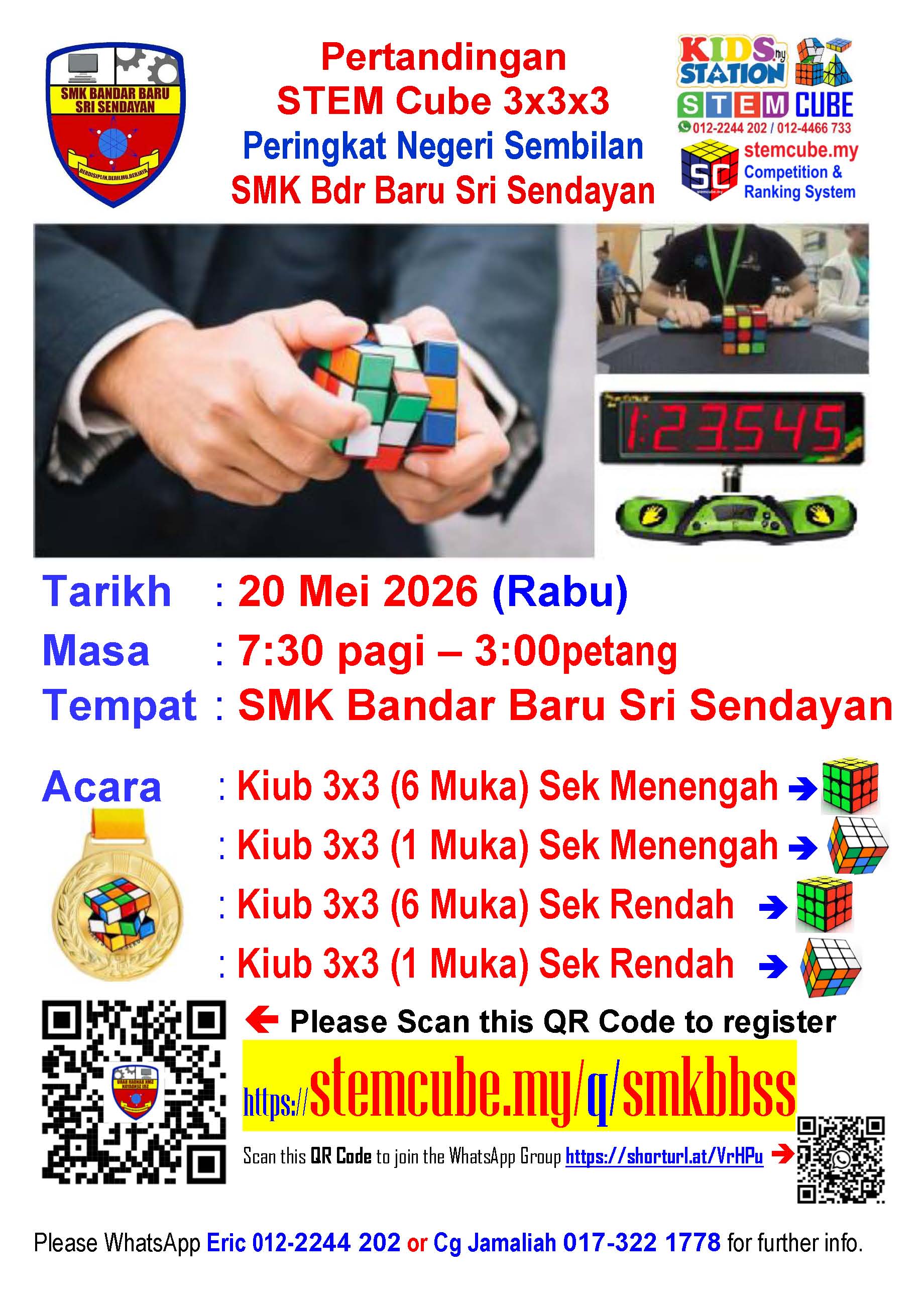 Tarikh : 20 Mei 2026 (Rabu)Masa : 7:30am - 3:00pmTempat : SMK Bandar Baru Sri Sendayan