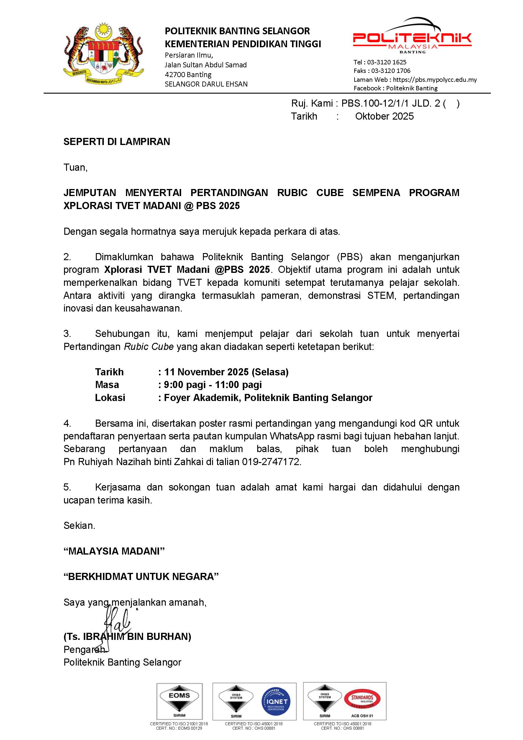 STEM Cube Challenge 3x3 sempena Xplorasi TVET Madani @ PBS 2025 di Politeknik Banting 2025